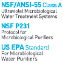 La tecnología Firewall® está certificada por IAPMO R&T, NSF/ANSI 55 Clase A, NSF P231 Protocolo para purificadores de agua microbiológicos, US EPA Guide Standard, NSF/ANSI 372 para la conformidad libre de plomo y CSA B483.1.